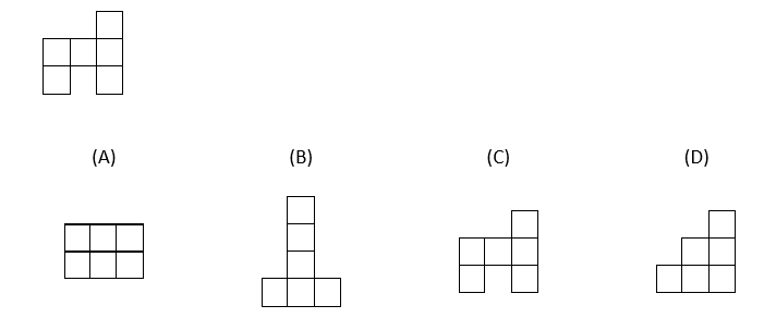 Peter uloží na stole 13 rovnakých kociek. Stavba vyzerá zhora tak, ako vidno na obrázku. Ako mohol vyzerať pohľad na stavbu spredu?
