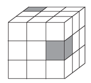 Kocka je zložená z 3×3×3 malých kociek, z ktorých sú 2 čierne a 25 je
