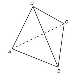Je daný štvorsten ABCD. Vieme, že \(|AD| = |BD| = |CD| = 3\) cm a \(|AB| = |BC| = |CA| = 4\) cm. Vypočítajte v stupňoch uhol rovín ACD a ABC.