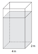 Nádrž tvaru kvádra má vnútorné rozmery vodorovného dna uvedené na obrázku. Hladina vody v nádrži siaha do výšky 980 cm. Koľko metrov kubických vody je v nádrži?