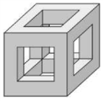 Teleso na obrázku je vyrobené z kocky o hrane 4 decimetre. V strede každej steny je do vnútra kocky vyrezaný štvorcový otvor 2 dm × 2 dm. Vypočítajte koľko dm² tapety potrebujeme na oblepenie všetkých stien tohto telesa zvnútra i zvonka.