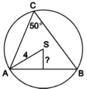 Obvodový uhol patriaci k oblúku AB kružnice s polomerom 4 cm má veľkosť 50°. Aká je vzdialenosť tetivy AB od stredu S tejto kružnice? Výsledok uveďte v centimetroch s presnosťou na dve desatinné miesta.