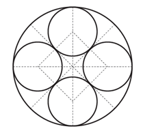 Gotický štvorlístok je ornament, v ktorom sú do väčšej kružnice vpísané štyri rovnaké dotýkajúce sa menšie kružnice. Polomer veľkej kružnice je jeden meter. Vypočítajte polomer menšej kružnice.