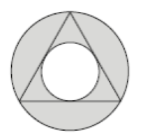 Na obrázku je medzikružie, do ktorého je vpísaný rovnostranný trojuholník tak, že jeho vrcholy ležia na vonkajšej kružnici a strany sa dotýkajú vnútornej kružnice. V akom pomere sú polomery kružníc?