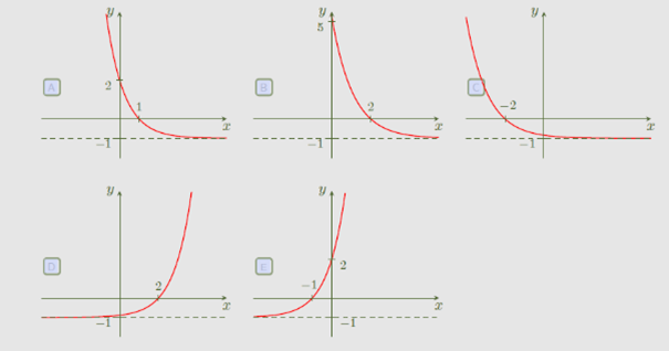 \(f: y = 1 - \left(\dfrac{1}{2}\right)^{x + 3}\) (F) \(f: y = \left(\dfrac{1}{2}\right)^{x - 3} - 1\)
