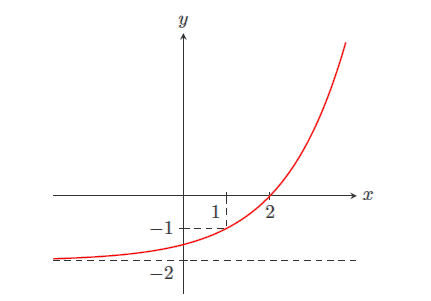 Na obrázku je časť grafu funkcie \(f: y = 2^{x + a} + b\), kde a, b sú neznáme reálne čísla. Akú hodnotu má súčin \(a \cdot b\)?